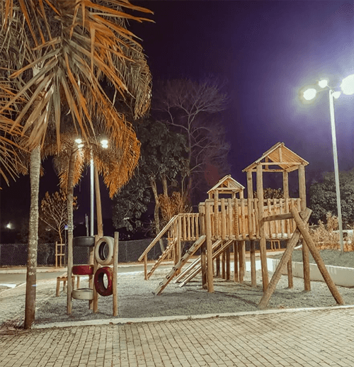 Para as crianças, o parque conta com playground equipado e áreas seguras para brincadeiras. Já os espaços abertos oferecem condições para jogos, esportes leves e atividades recreativas, garantindo diversão para todas as idades.